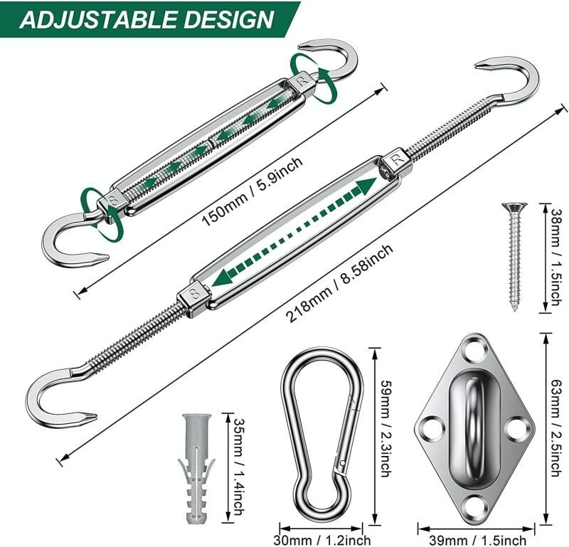 4. Features: complete specifications, easy to use, stainless steel material, wear-resistant and durable, not easy to rust, simple operation, suitable for most shade sails