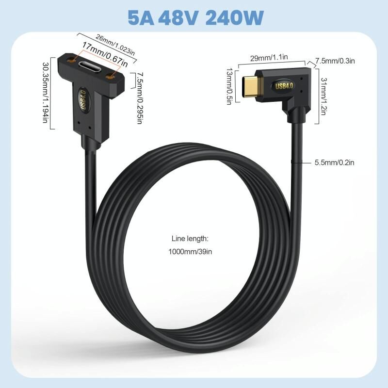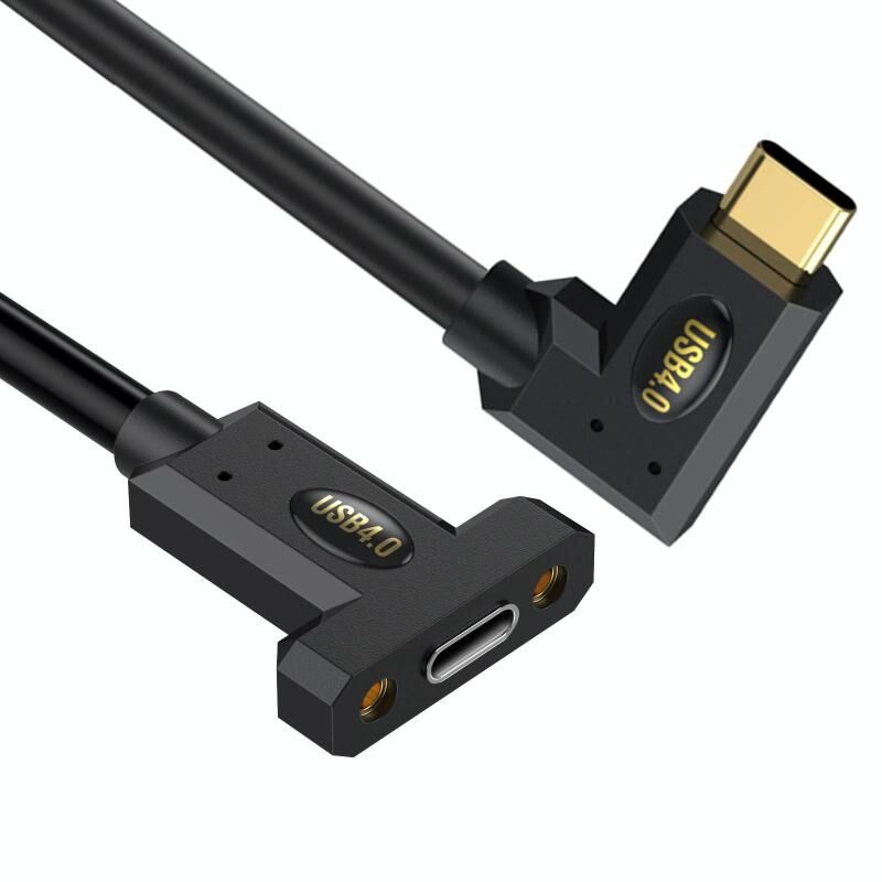 240W Type-C Male Elbow to Type-C Female Screw Fixed Panel Extension Cable with Ear, Length:0.6m