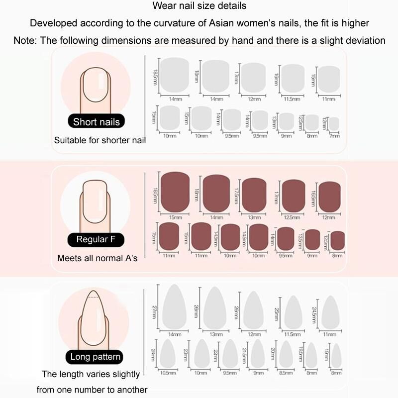 6. Το μέγεθος μετριέται χειροκίνητα και θα υπάρχουν μικρές αποκλίσεις. Το άκρο με τον αριθμό στο πίσω μέρος της πλάκας νυχιών είναι προς την κατεύθυνση της άκρης του δακτύλου.