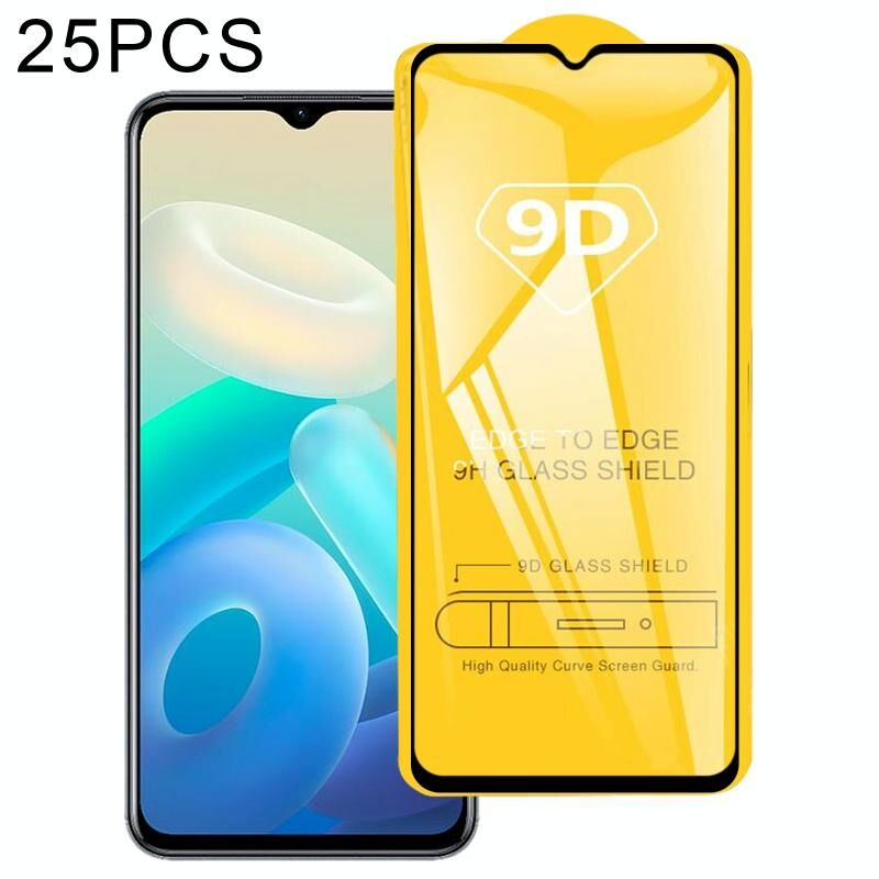 25PCS 9D πλήρης κόλλα πλήρους οθόνης μετριασμένη γυάλινη μεμβράνη για το vivo Y55 5G