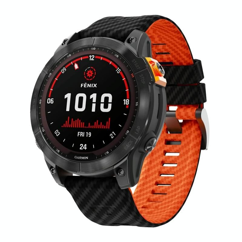26 χιλιοστά δύο χρωμάτων Carbon Fiber μοτίβο σιλικόνης ρολόι μπάντα (μαύρο πορτοκαλί)