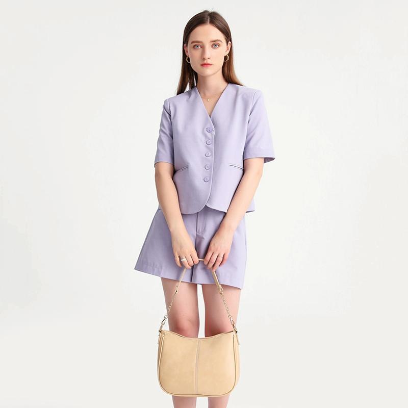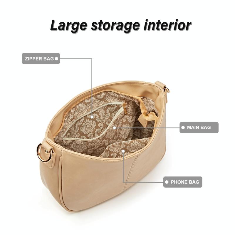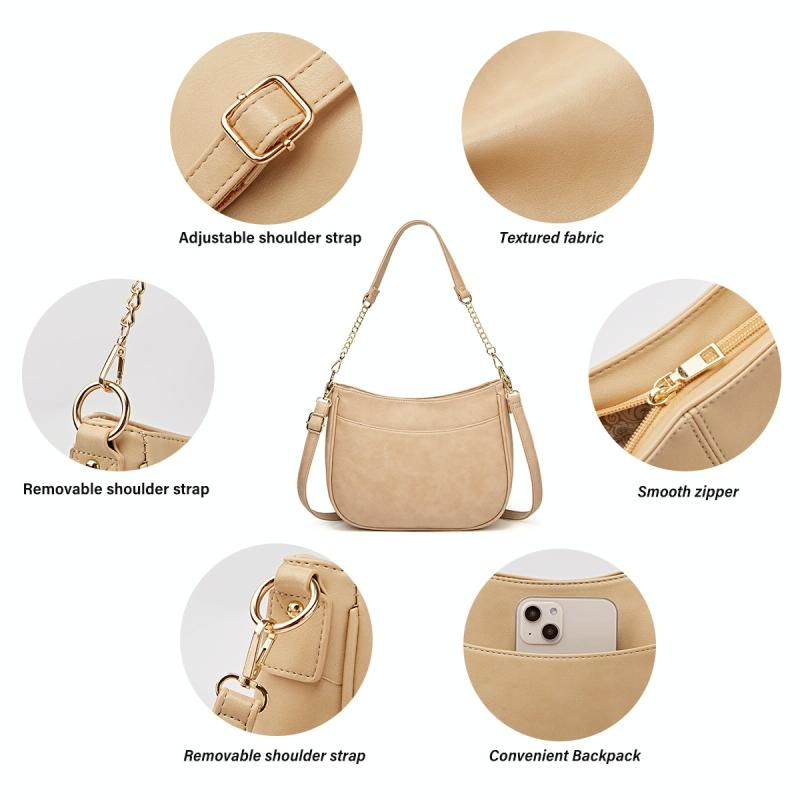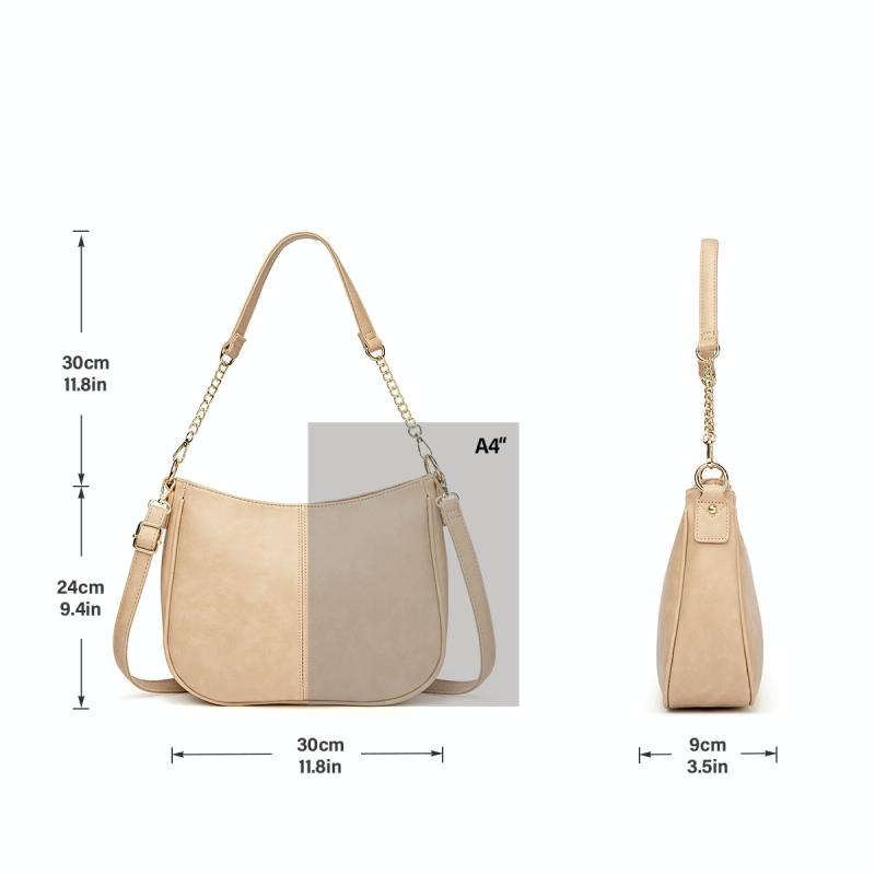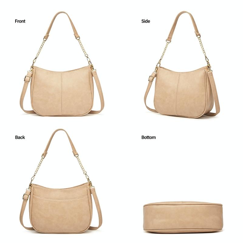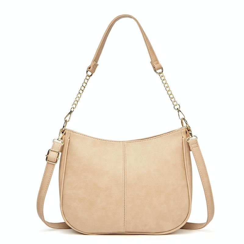 270 Τσάντα Ώμου με Αλυσίδα, Δερμάτινη, Ρυθμιζόμενη, Μεγάλης Χωρητικότητας (Μπεζ)