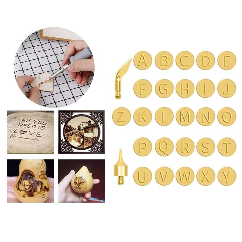 1. Set List: (A-Z) και 2 μύτες σχεδίασης. Μπορεί να καλύψει τις διαφορετικές εξατομικευμένες εργασίες καύσης ξύλου σας.