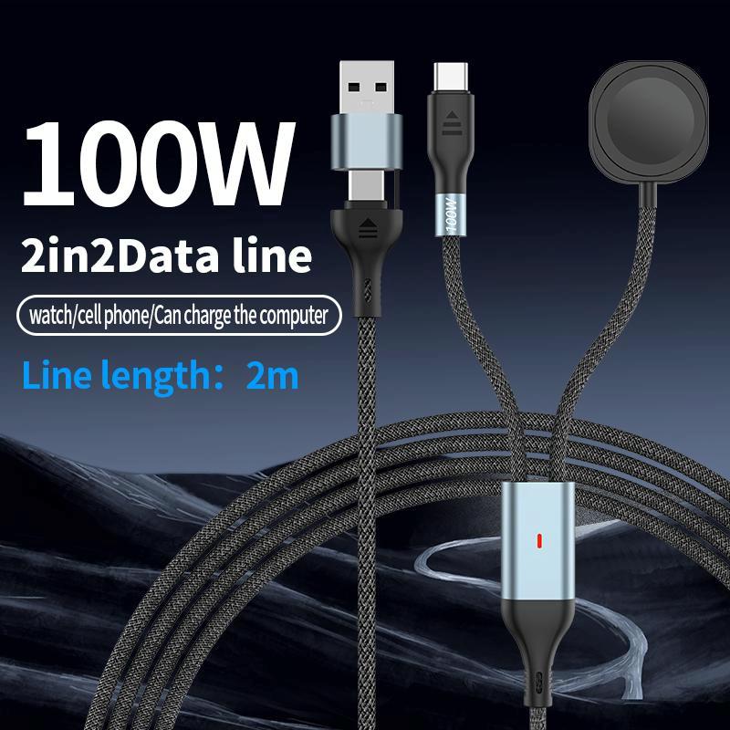 2m 2-in-2 100W PD Fast Charging Date Cable for Phone and Watch