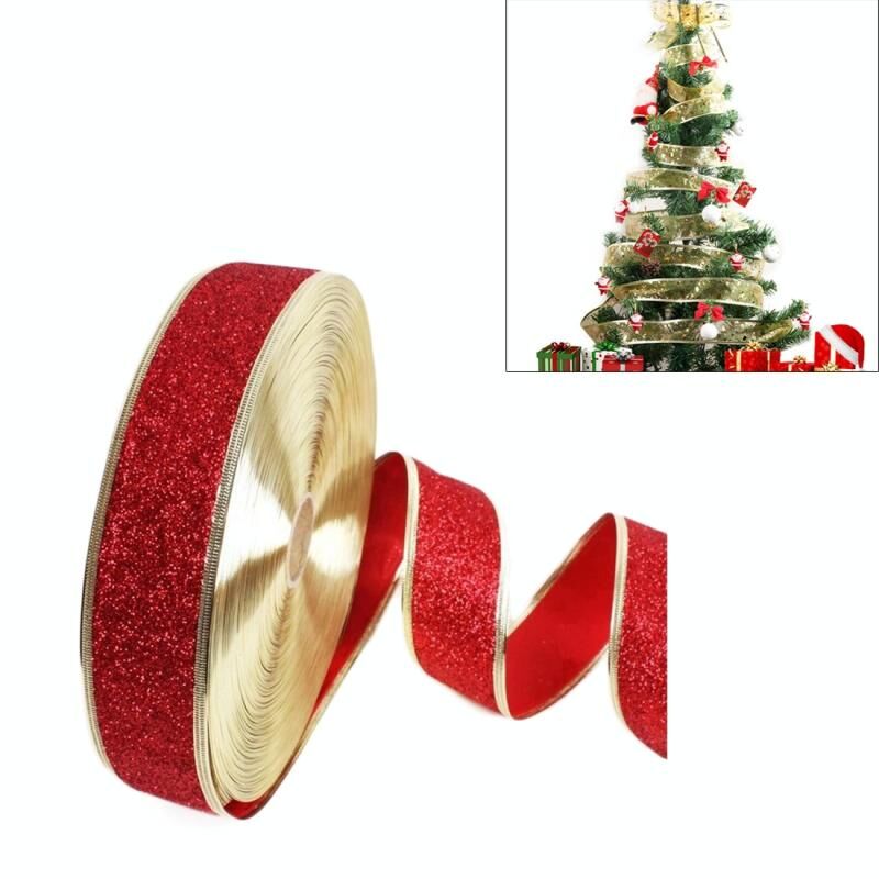 2m Christmas Party Decoration Glitter Powder Christmas Tree Decoration Ribbon(Dark Red)