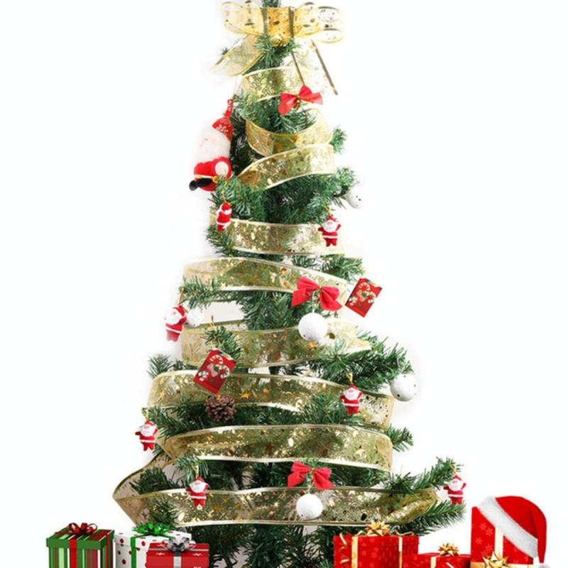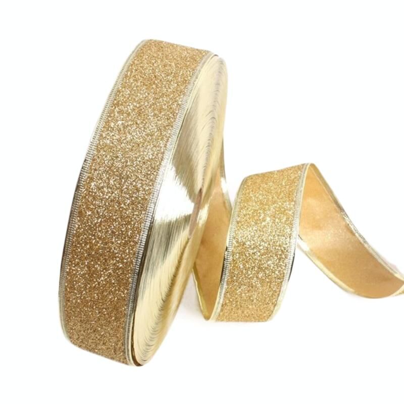 2m Christmas Party Decoration Glitter Powder Christmas Tree Decoration Ribbon(Gold)