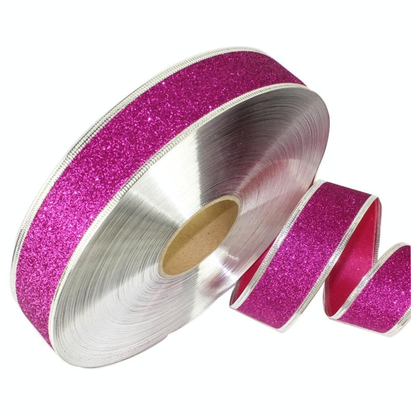 2m Christmas Party Decoration Glitter Powder Christmas Tree Decoration Ribbon(Magenta)