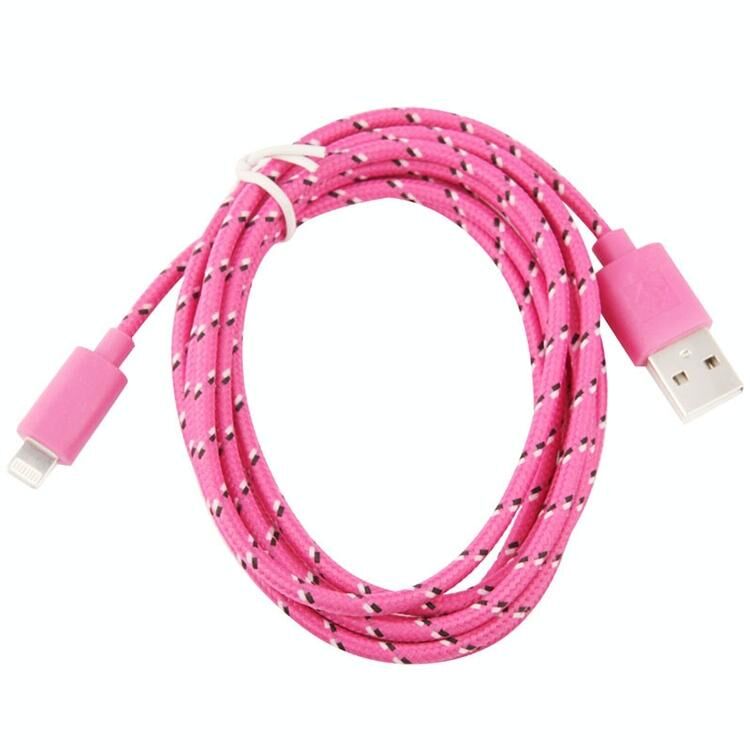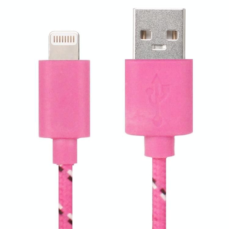 2m Nylon Netting USB Data Transfer Charging Cable For iPhone, iPad(Magenta)