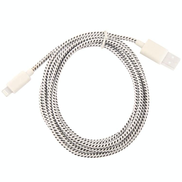 2m Nylon Netting USB Data Transfer Charging Cable For iPhone, iPad(White)