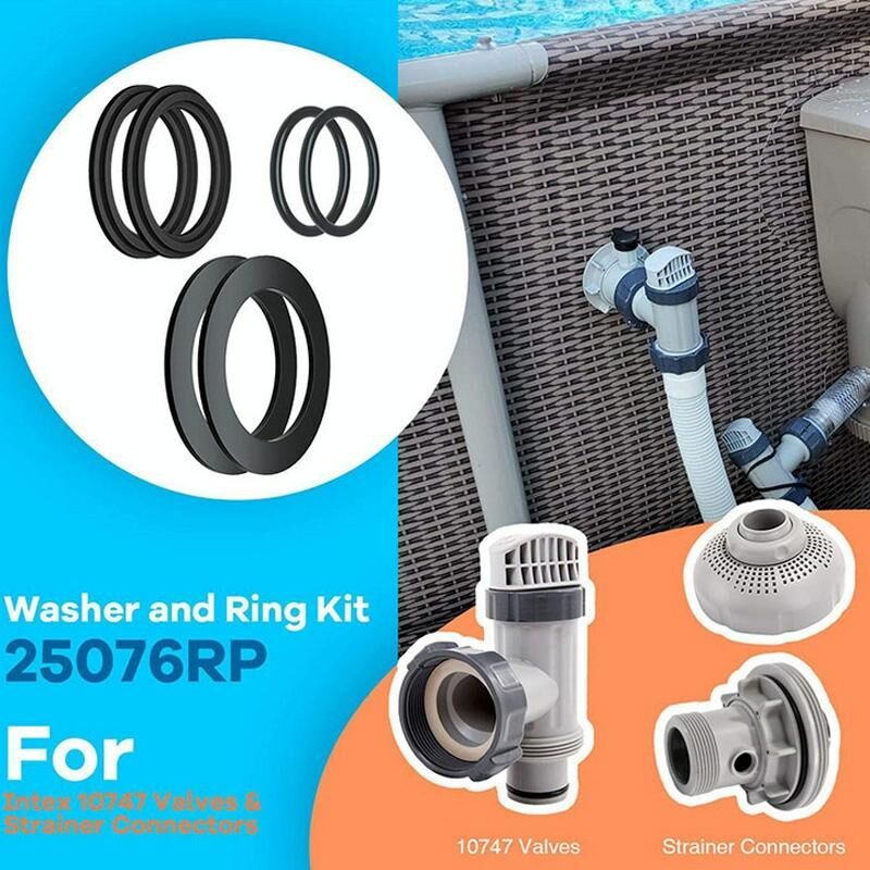 1. Το σετ δακτυλίων μπορεί να αυξήσει την επιφάνεια επαφής μεταξύ του σωλήνα ή του εξοπλισμού της πισίνας και της επιφάνειας της βαλβίδας εμβόλου, αποτρέποντας τη φθορά της επιφάνειας της βαλβίδας εμβόλου Intex. Διορθώνει διαρροές στις συνδέσεις σωλήνα και φίλτρου της βαλβίδας εμβόλου. 2. Το κιτ φλάντζας και δακτυλίων 25076RP είναι κατάλληλο για ανταλλακτικά πισίνας Intex 10747, 25006, 25010, 28633, 28635 και 28621, κ.λπ. Αντικαταστήστε το φίλτρο της πισίνας σας 18 και μεγαλύτερο. 3. Κατασκευασμένο από υψηλής ποιότητας, ανθεκτικό καουτσούκ, κατασκευασμένο για να διαρκέσει. 4. Ταιριάζει σε σύνδεσμο 1-1/2 ιντσών. 5. Κάντε τη συντήρηση της πισίνας σας απλή και εύκολη με τους ελαστικούς δακτυλίους O-ring.