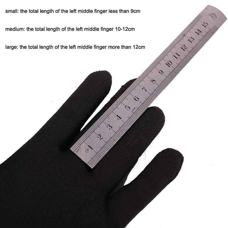 7. Size: small: the total length of the left middle finger less than 9cm, medium: the total length of the left middle finger 10-12CM, large gloves: the total length of the left middle finger more than 12cm