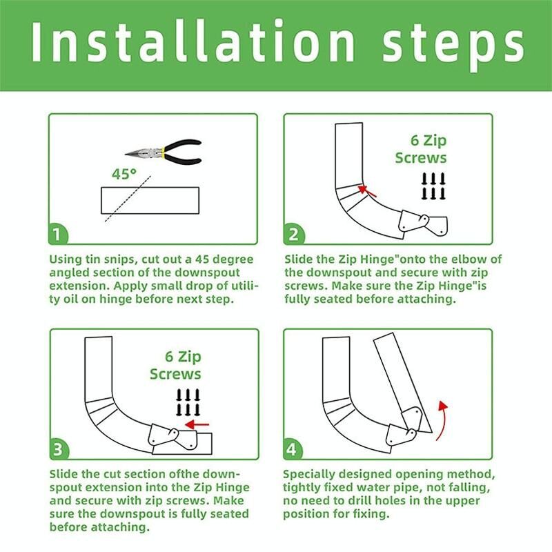 4. Οι μεντεσέδες μπορούν να εγκατασταθούν εύκολα σε οποιοδήποτε μέγεθος ορθογώνιας ή τετράγωνης υδρορροής. Οι μεντεσέδες μπορούν να βαφτούν ώστε να ταιριάζουν με οποιοδήποτε χρώμα υδρορροής.