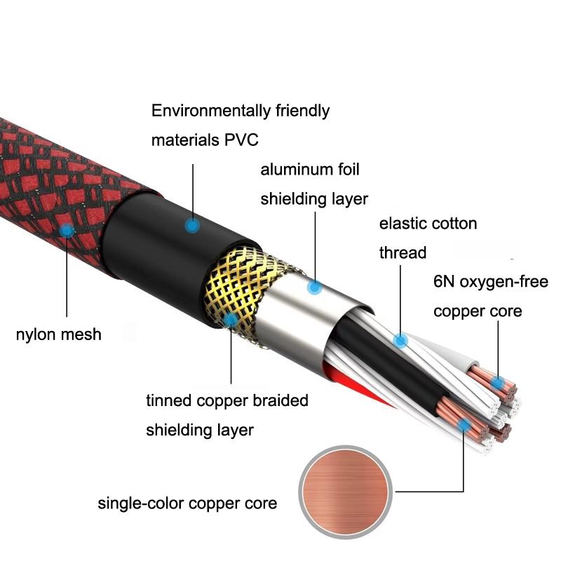 3. Το καλώδιο είναι κατασκευασμένο από αγωγό 22AWG και χαλκό χωρίς οξυγόνο 6N, ο οποίος μπορεί να αντιστέκεται αποτελεσματικά στις παρεμβολές και να μειώνει τον θόρυβο, παρέχοντας υψηλή πιστότητα ήχου