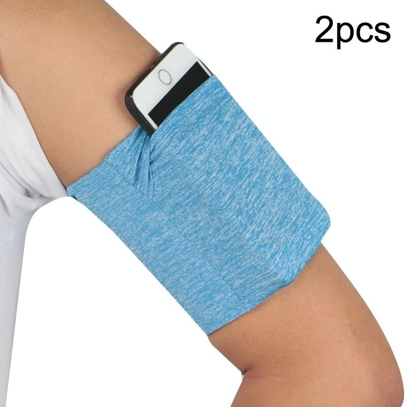 2pcs υπαίθρια γυμναστική κινητό τηλέφωνο βραχίονα τσάντα αθλητικών ελαστικών βραχιόνων (μπλε νήματα)