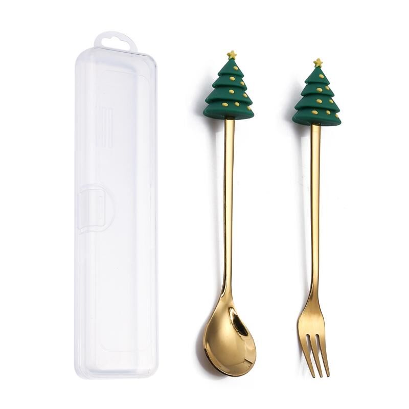 3. Πολυλειτουργικό χαριτωμένο σετ κουταλιού και πιρουνιού για επιδόρπια, χαριτωμένο σετ μαχαιροπίρουνων με θέμα τα Χριστούγεννα με εορταστικά στοιχεία, προσθέτοντας διασκέδαση και χριστουγεννιάτικη ατμόσφαιρα στην εμπειρία φαγητού