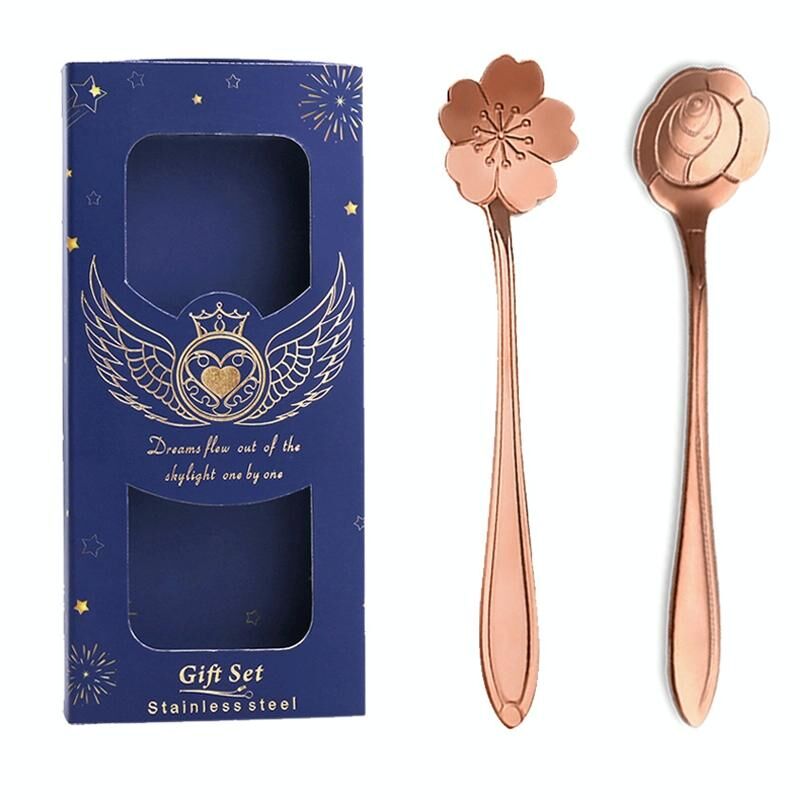 Σετ μαχαιροπήρουνων από ανοξείδωτο χάλυβα με κουτάλι και πιρούνι 2 τεμαχίων / πακέτο, στυλ: Κουτάλια Rose Gold+Μπλε κουτί