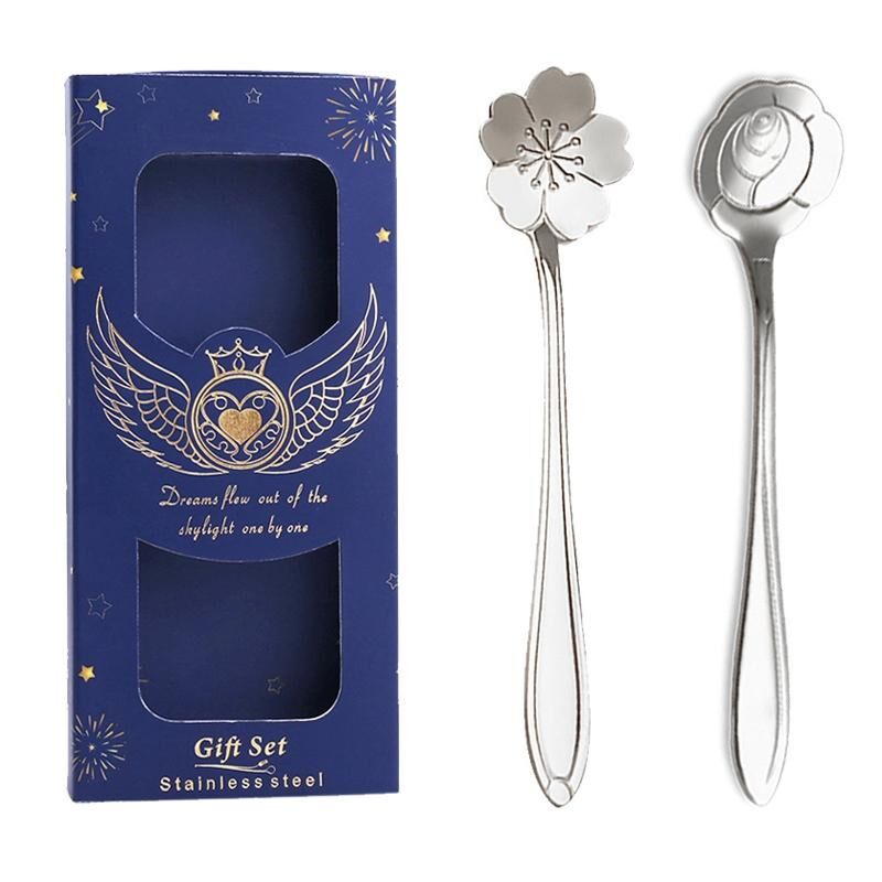 Σετ μαχαιροπήρουνων από ανοξείδωτο χάλυβα με κουτάλι και πιρούνι 2 τεμαχίων / πακέτο, στυλ: Ασημένιο κουτάλι+Μπλε κουτί