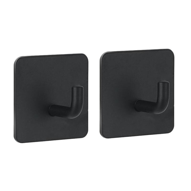 2 τεμάχια από ανοξείδωτο χάλυβα γάντζοι αποθήκευσης κουζίνας μπάνιου πίσω από τα άγκιστρα της πόρτας με κόλλα, στυλ: Μαύρο τετράγωνο