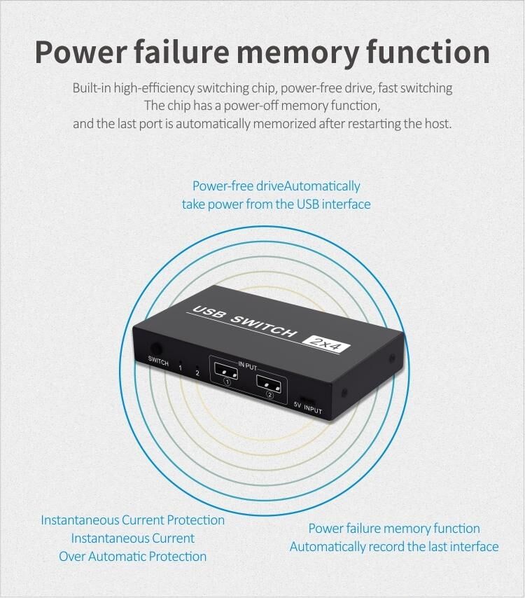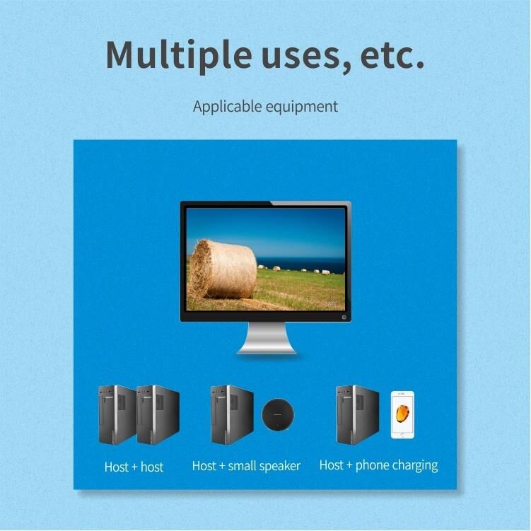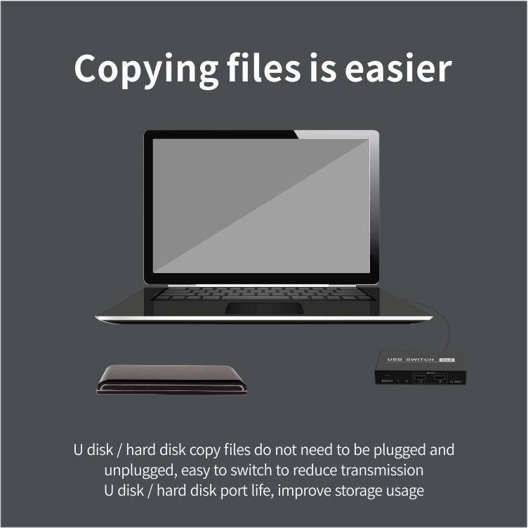 Δύο υπολογιστές μπορούν να μοιράζονται ηλεκτρονικές συσκευές όπως εκτυπωτή/πληκτρολόγιο/ποντίκι/δίσκο U, χωρίς την ανάγκη επανειλημμένης τοποθέτησης και αφαίρεσης μεταξύ δύο συσκευών, ελεύθερη εναλλαγή γραφείου και βελτίωση της αποδοτικότητας της εργασίας.