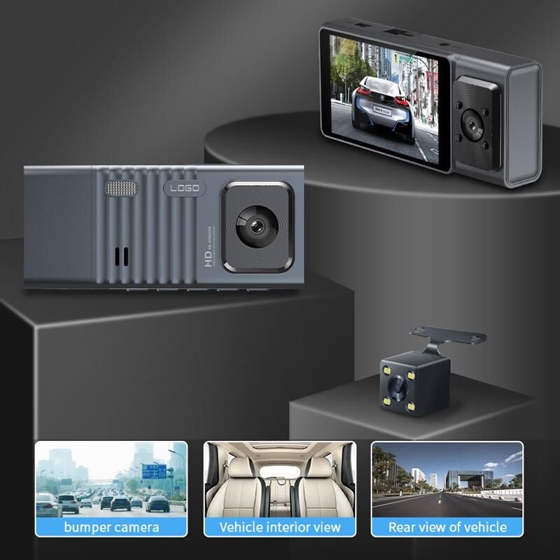 1. The dashcam uses a three-channel system, providing a 170-degree front camera, a 140-degree in-car camera, and a 120-degree rear camera. Capture video from the front, rear, and cabin of the vehicle simultaneously as important evidence in case of disputes or accidents.