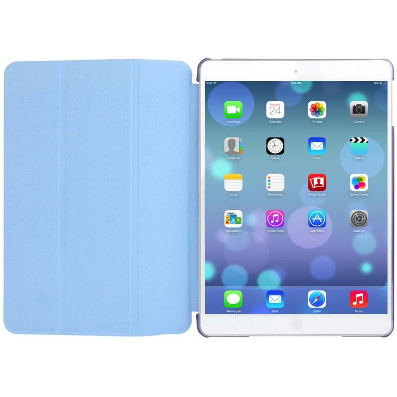 3-folding Leather Cover Frosted Plastic Case with Holder & Sleep / Wake-up Function for iPad Air (Blue)