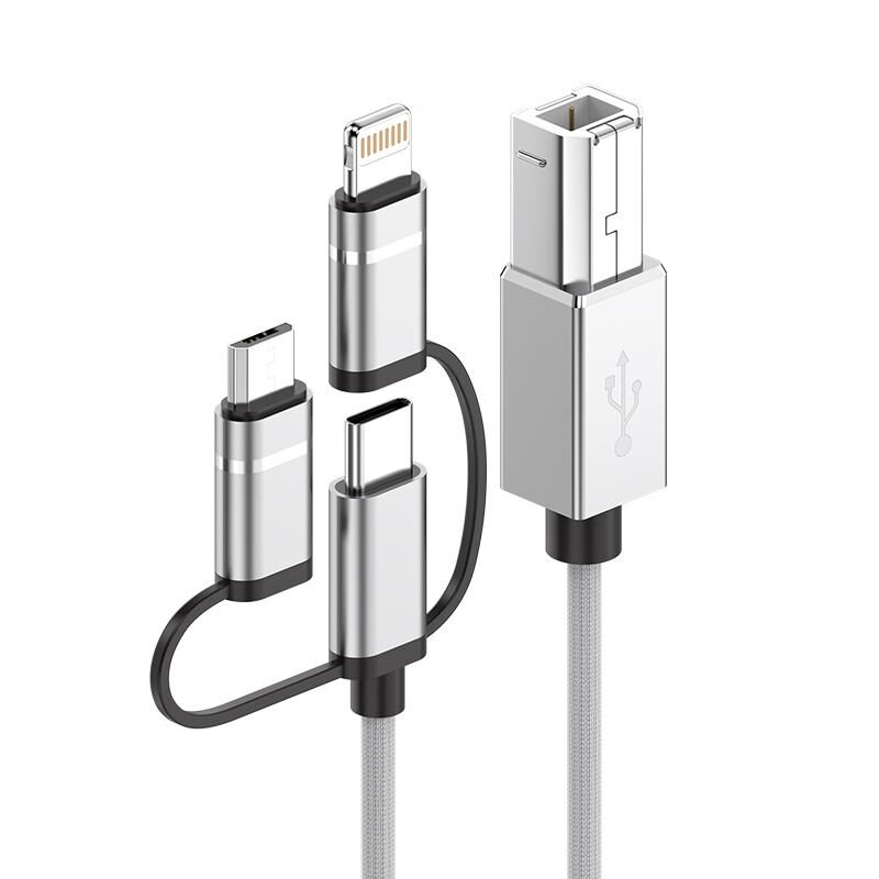 3 in 1 8 Pin, Type-C, Micro USB to USB-B MIDI Instruments Printer Cable, Length: 1m, Length:1m(Silver)