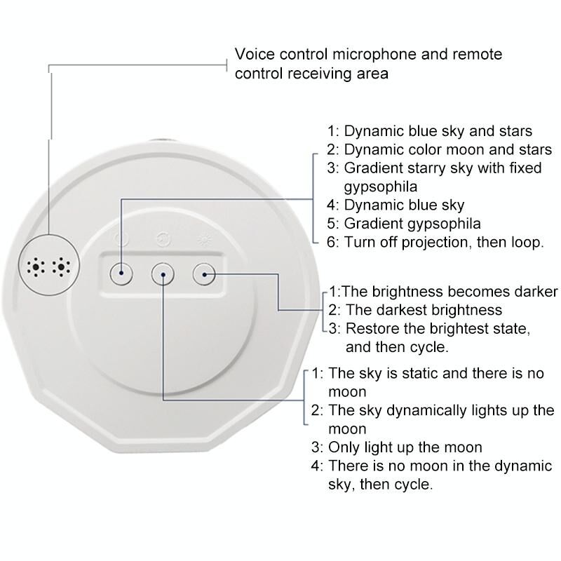 6. 3 in 1 projection: red, green and blue water pattern projection, green gypsophila laser, white moon projection
