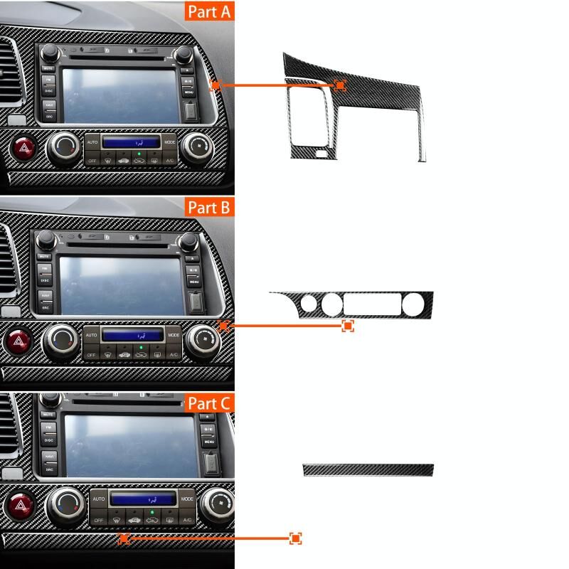 3 in 1 Car Carbon Fiber Central Control Navigation Panel Decorative Sticker for Honda Civic 8th Generation 2006-2011, Left Drive