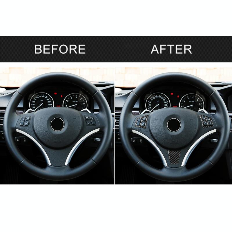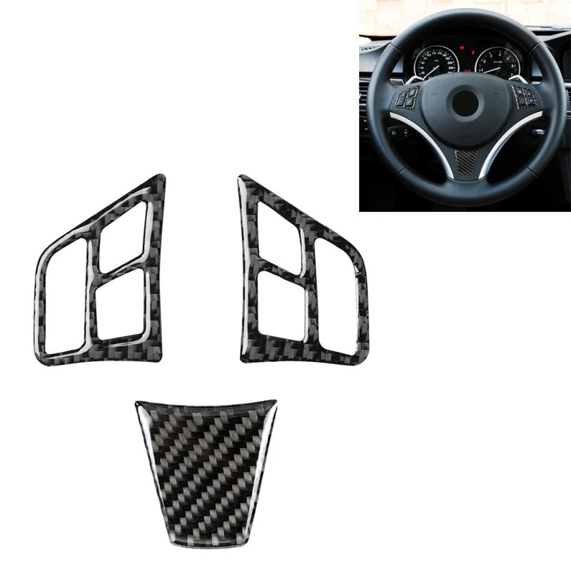 3 in 1 Car Carbon Fiber Solid Color Steering Wheel Button Decorative Sticker for BMW 3 Series E90 2005-2012, Left and Right Drive Universal