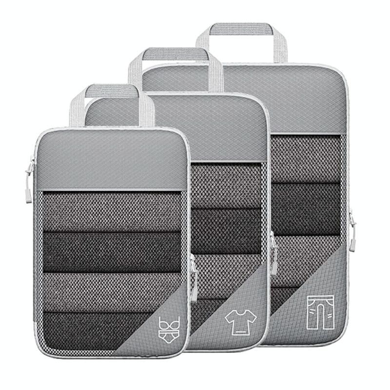 3 σε 1 κύβους ταξιδιού ματιών συμπίεσης ρούχα εσώρουχα τσάντες συσκευασίας (γκρι)