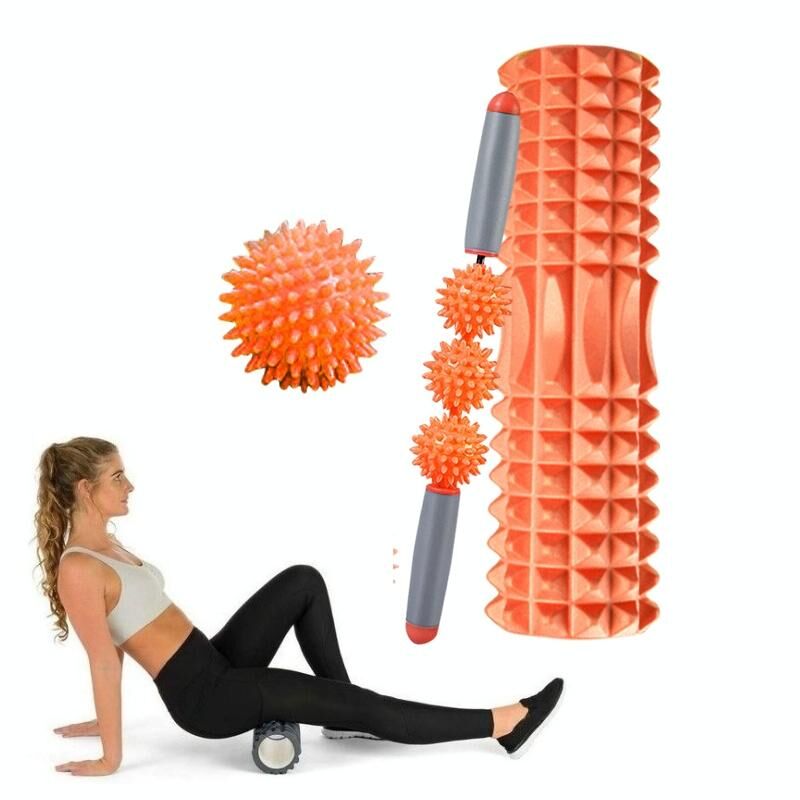 3 in 1 Eva Foam Roller Hollow Muscle Relaxation Roller Yoga Column Set, Length: 45cm (Orange Crescent)