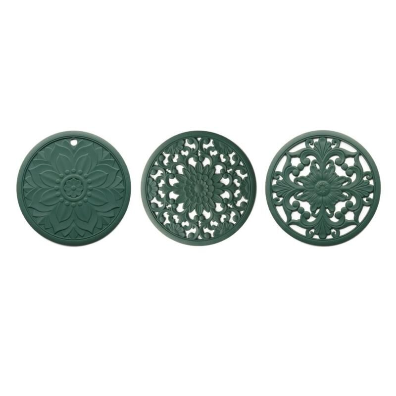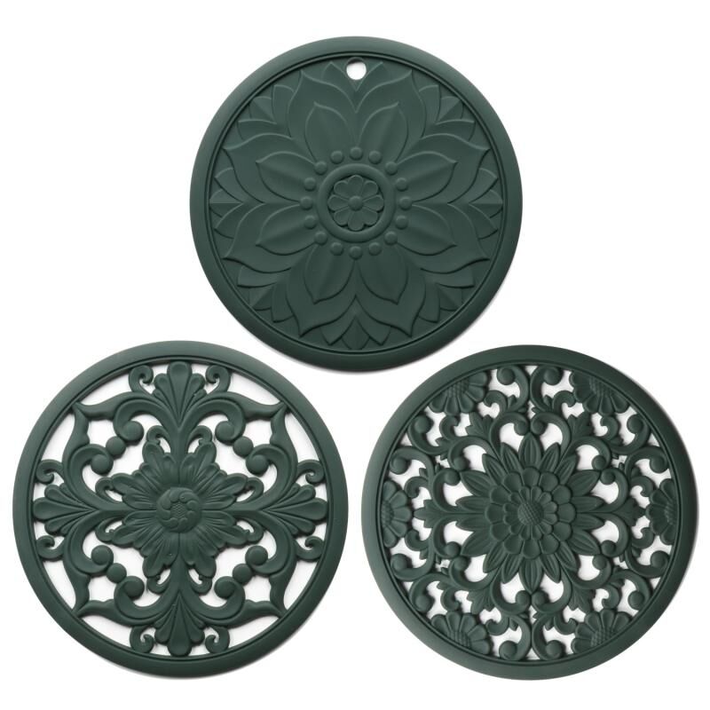 Σετ 3 σε 1 Αντιθερμικό Υπόστρωμα Σιλικόνης με Κούφιο Λουλούδι, Προστασία από Εγκαύματα για Κατσαρόλες και Μπολ (Μαύρο)