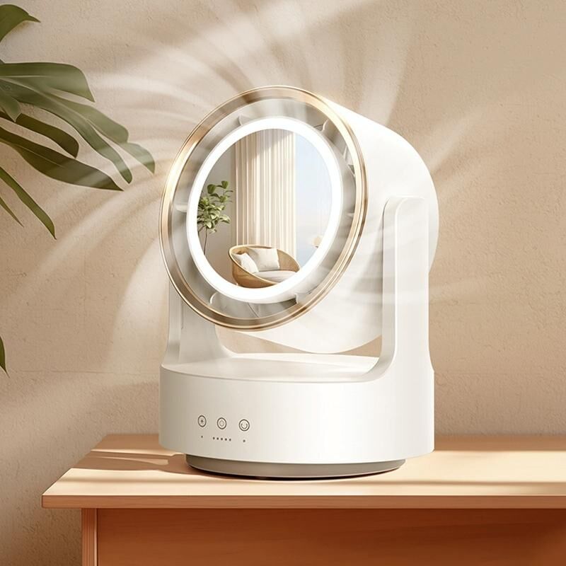 1. Experience Gentle, Refreshing Airflow: Our bladeless circulating fan with integrated lighting and mirror offers a perfect balance of gentle and powerful air circulation, creating a refreshing micro-climate throughout your home. The high-speed airflow generated by the motor quickly drives indoor air to form a strong convection, achieving true circulation that enhances air quality for comfortable breathing.