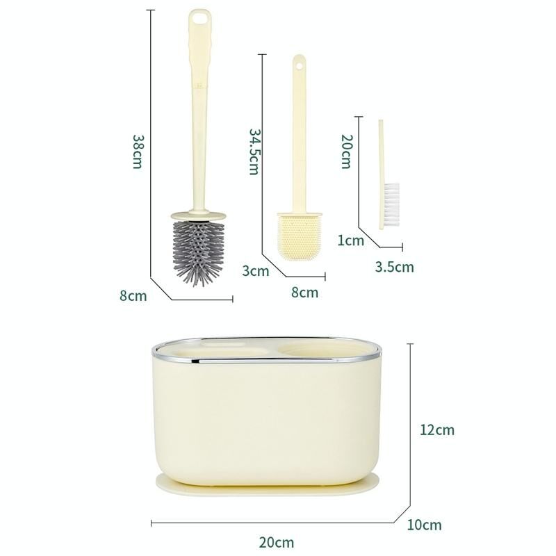 7. Size: toilet brush about 38 x 8cm, TPR flat brush about 34.5 x 3 x 8cm, crevice brush about 20 x 1 x 3.5cm, base about 20 x 10 x 12cm