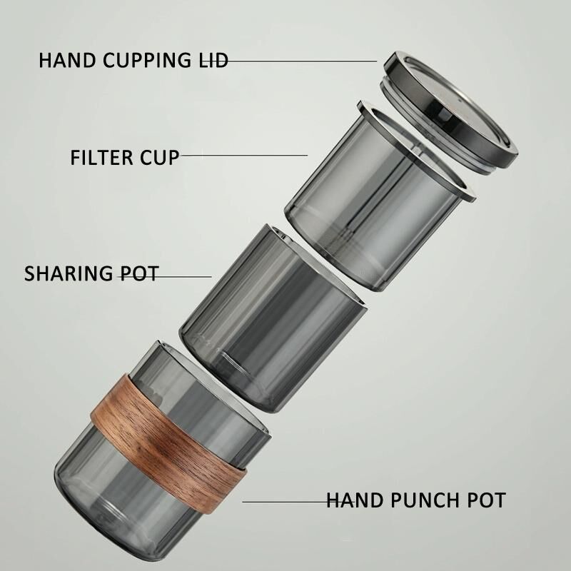 1. Δημιουργικός σχεδιασμός 3 σε 1: Ο έξυπνος σχεδιασμός στοίβαξης συνδυάζει μια ηλεκτρική κατσαρόλα παρασκευής καφέ, ένα φίλτρο και μια κατσαρόλα για σερβίρισμα, ιδανική για επαγγελματικά ταξίδια, ταξίδια, κάμπινγκ κ.λπ. Φτιάξτε έναν καφέ οποιαδήποτε στιγμή, οπουδήποτε. 2. Συνιστάται η παρασκευή με μικρή ποσότητα καφέ (κάτω από 15γρ.), για ευκολότερη επίτευξη ομοιόμορφης εκχύλισης. 3. Επιλεγμένο υλικό PCTG κατάλληλο για τρόφιμα, ασφαλές και υγιεινό, ανθεκτικό σε υψηλές θερμοκρασίες, με υψηλή θερμομόνωση και υψηλό ρυθμό αύξησης της θερμοκρασίας εκχύλισης. 4. Φίλτρο από ανοξείδωτο ατσάλι, επαναχρησιμοποιήσιμο και εύκολο στον καθαρισμό. 5. Υλικό: PCTG κατάλληλο για τρόφιμα + ανοξείδωτο ατσάλι 304 + σιλικόνη κατάλληλη για τρόφιμα + ξύλο καρυδιάς. 6. Κατάλληλο για: 1-2 άτομα. 7. Χωρητικότητα προϊόντος: 300ml (κατσαρόλα παρασκευής καφέ), 200ml (κατσαρόλα για σερβίρισμα). 8. Βάρος: περίπου 265.5γρ. 9. Απλά ξεπλύνετε με νερό μετά τη χρήση. Μην το βάζετε στο πλυντήριο πιάτων.
