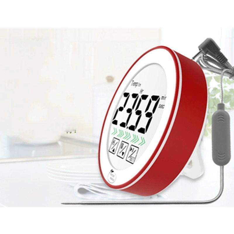 3 in 1 Room Temperature Measurement + Probe Food Measurement + Countdown Function Multifunctional Thermometer(Red)