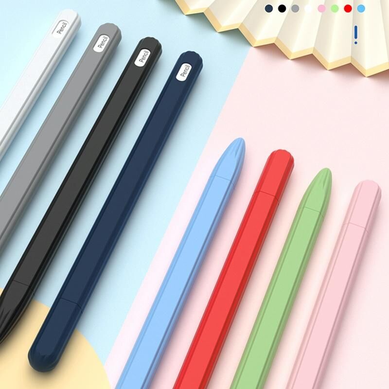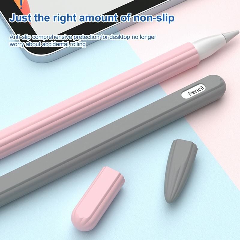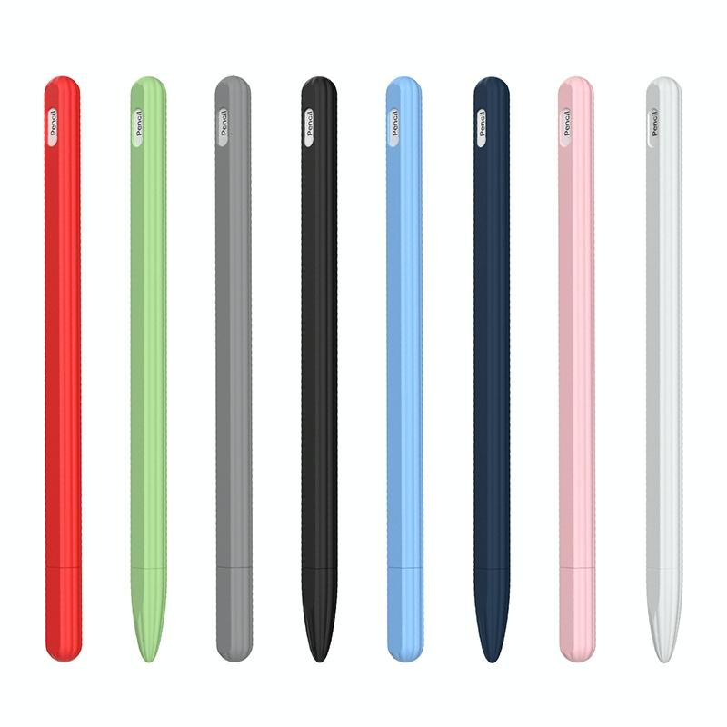 Θήκη στυλό 3 σε 1 με ριγέ υγρή σιλικόνη και δύο καπάκια για Apple Pencil 1 (Κόκκινο)