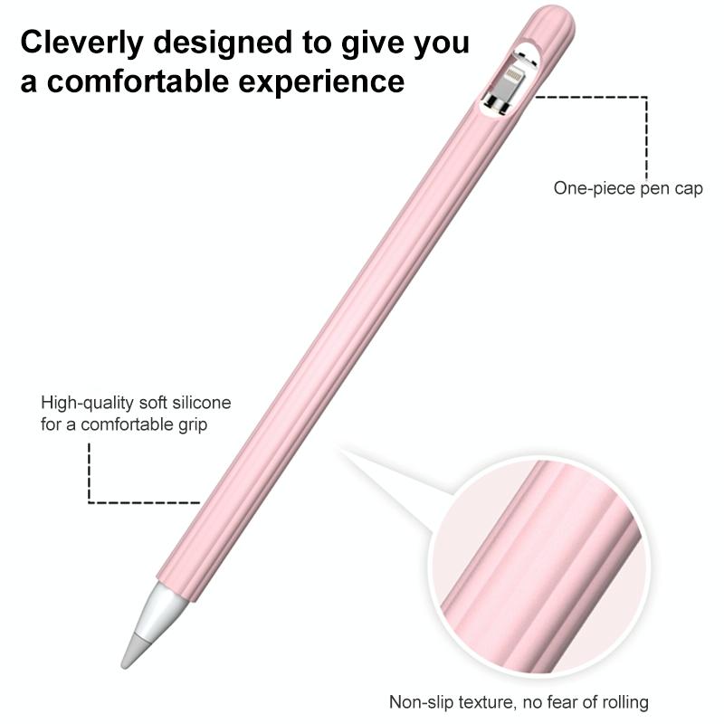 Θήκη στυλό 3 σε 1 με ριγέ υγρή σιλικόνη και δύο καπάκια για Apple Pencil 2 (Κόκκινο)