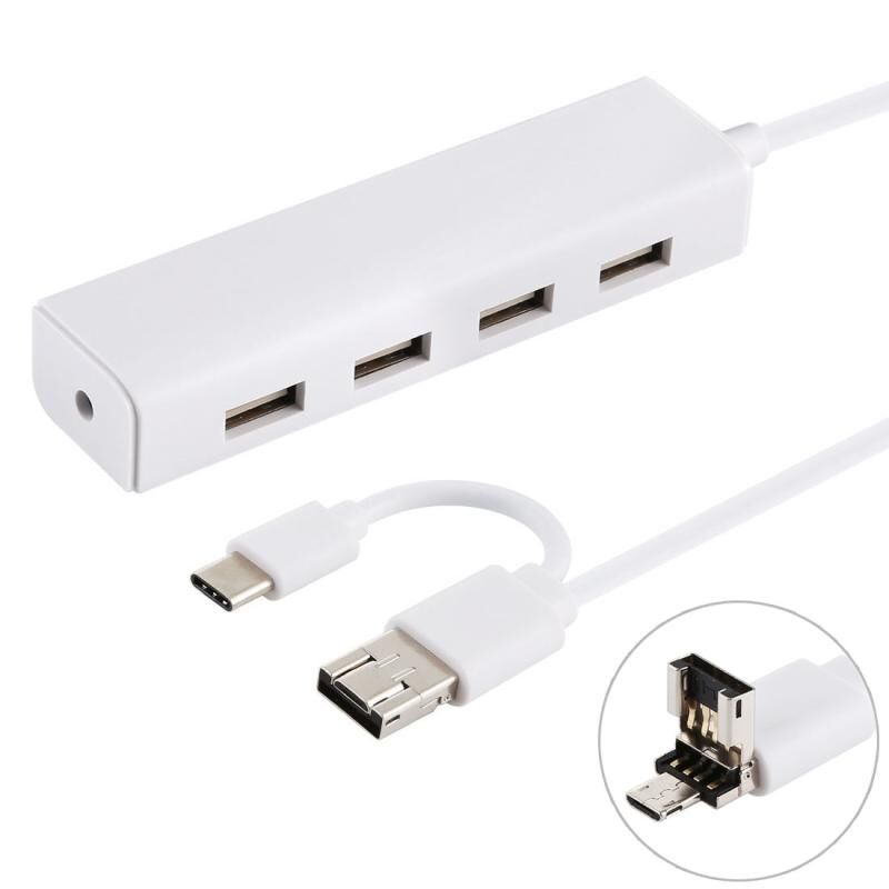 Μετατροπέας 3 σε 1 USB-C / Type-C + Micro USB + 4 x USB 2.0 θύρες HUB, Μήκος καλωδίου: 12cm (Λευκό)
