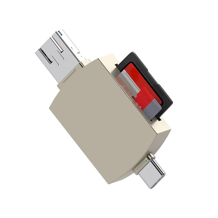 Προσαρμογέας 3 σε 1 USB-C / Type-C σε USB + Micro USB OTG, Αναγνώστης Καρτών TF / SD (Χρυσό)