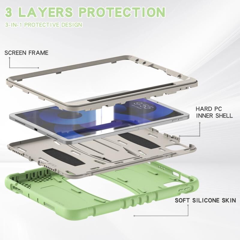 3-Layer PC + Silicone Shockproof Tablet Case with Holder For iPad Air 2020 / 2022 10.9 / Pro 11 2022 / 2021 / 2020 / 2018(Matcha Green)