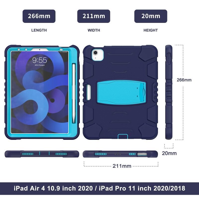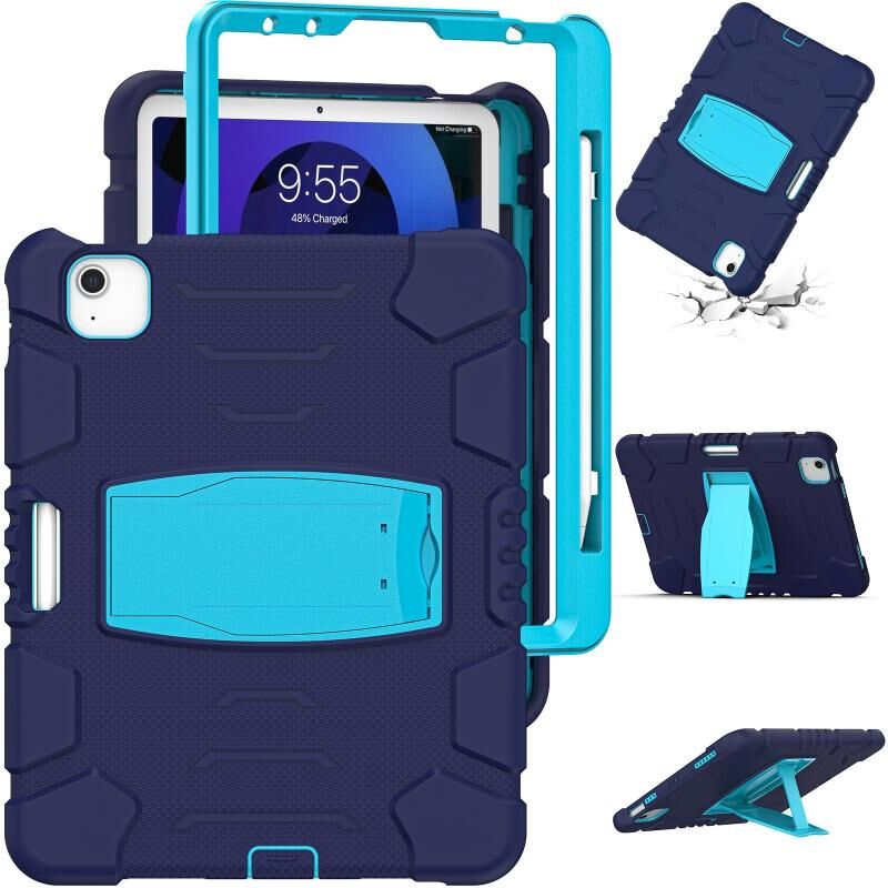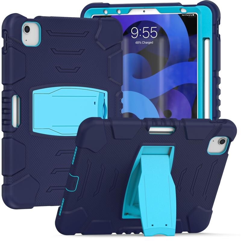 3-Layer PC + Silicone Shockproof Tablet Case with Holder For iPad Air 2020 / 2022 10.9 / Pro 11 2022 / 2021 / 2020 / 2018(NavyBlue+Blue)