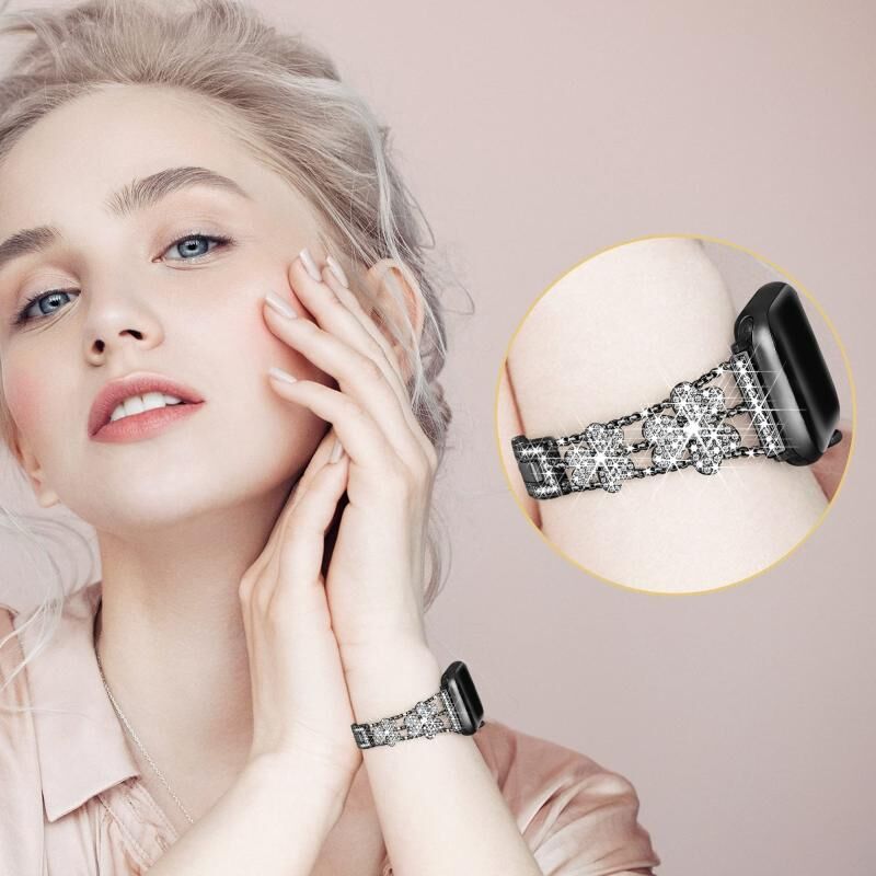 3-Leaf Clover Diamond Watch Band For Apple Watch Ultra 49mm&Watch Ultra 2 49mm / Series 9&8&7 45mm / SE 3&SE 2&6&SE&5&4 44mm / 3&2&1 42mm(Black)