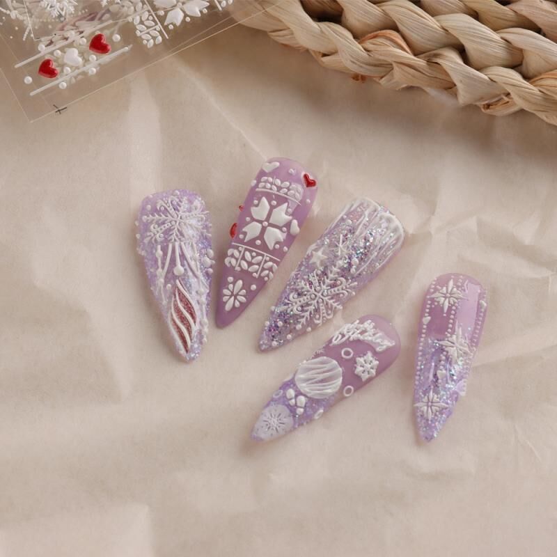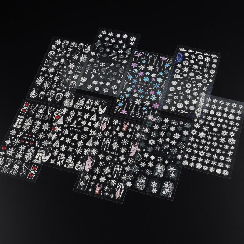 3 PCS 5D ανάγλυφα αυτοκόλλητα νύχια Χριστουγεννιάτικα αυτοκόλλητα νύχια με χιονονιφάδα Elk(5D-K027)