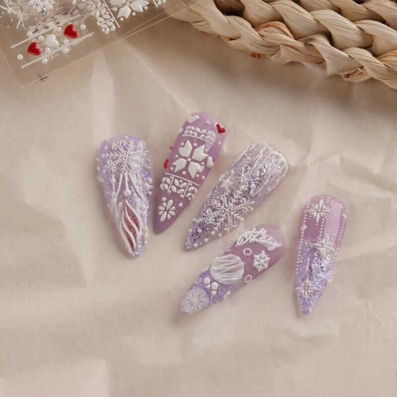 3 PCS 5D ανάγλυφα αυτοκόλλητα νύχια Χριστουγεννιάτικα αυτοκόλλητα νύχια με χιονονιφάδα Elk(5D-K126)