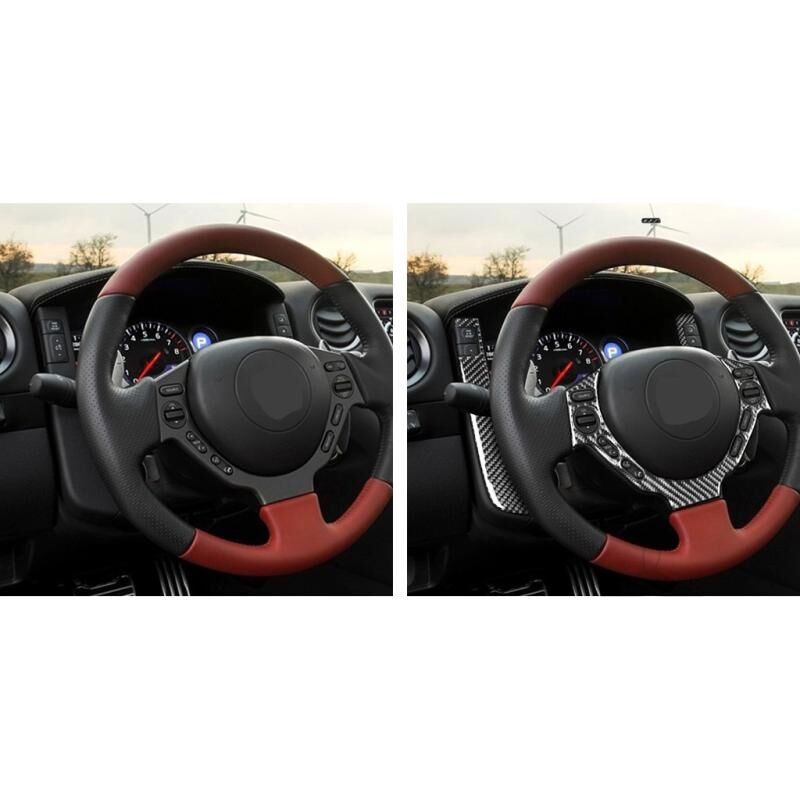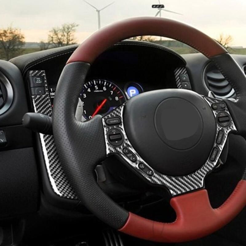 3 PCS Car Carbon Fiber Dashboard Steering Wheel Buttons Decorative Sticker for Nissan GTR R35 2008-2016, Left and Right Drive Universal