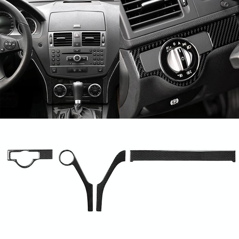 3τμχ Διακοσμητικά Αυτοκόλλητα Carbon Fiber για Φανάρια Mercedes-Benz W204 C-Class 2007-2010