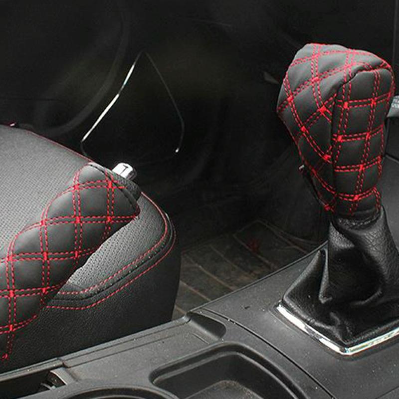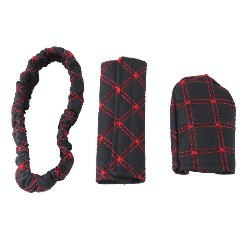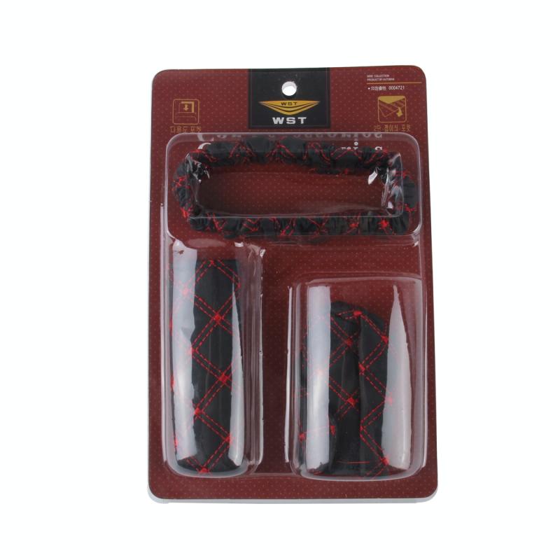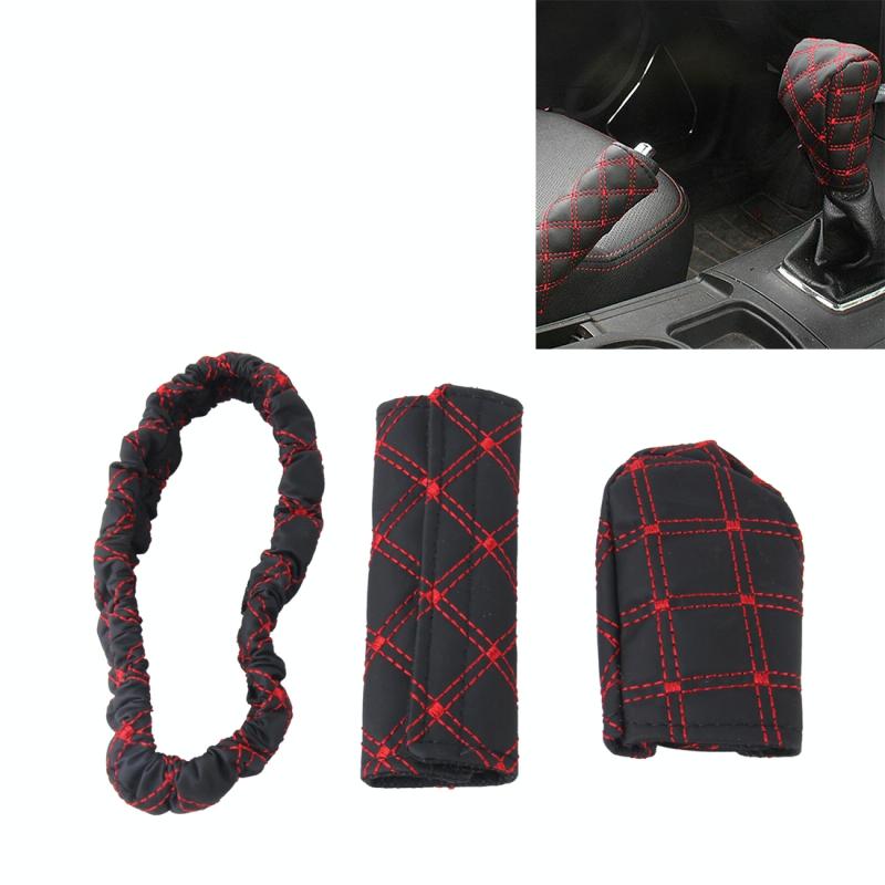 3 PCS Car Hand Brake Cover Shift Knob Gear Stick Cushion Sets Rear View Mirror Sets Cover Car Accessory Interior Decoration Pad(Red)