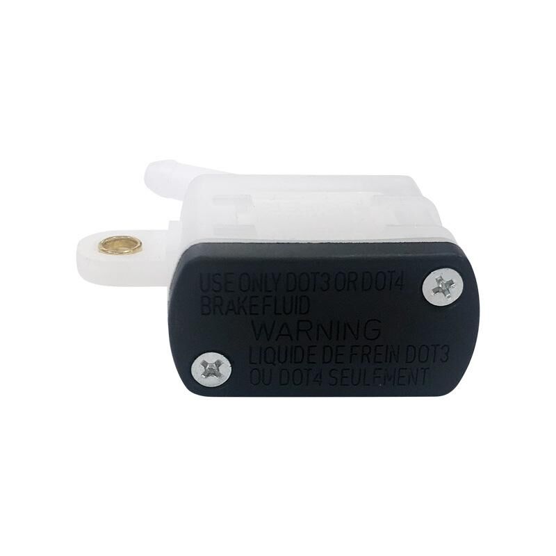 3. Fluid reservoir bottle mounted on the pump of motorcycle brakes.