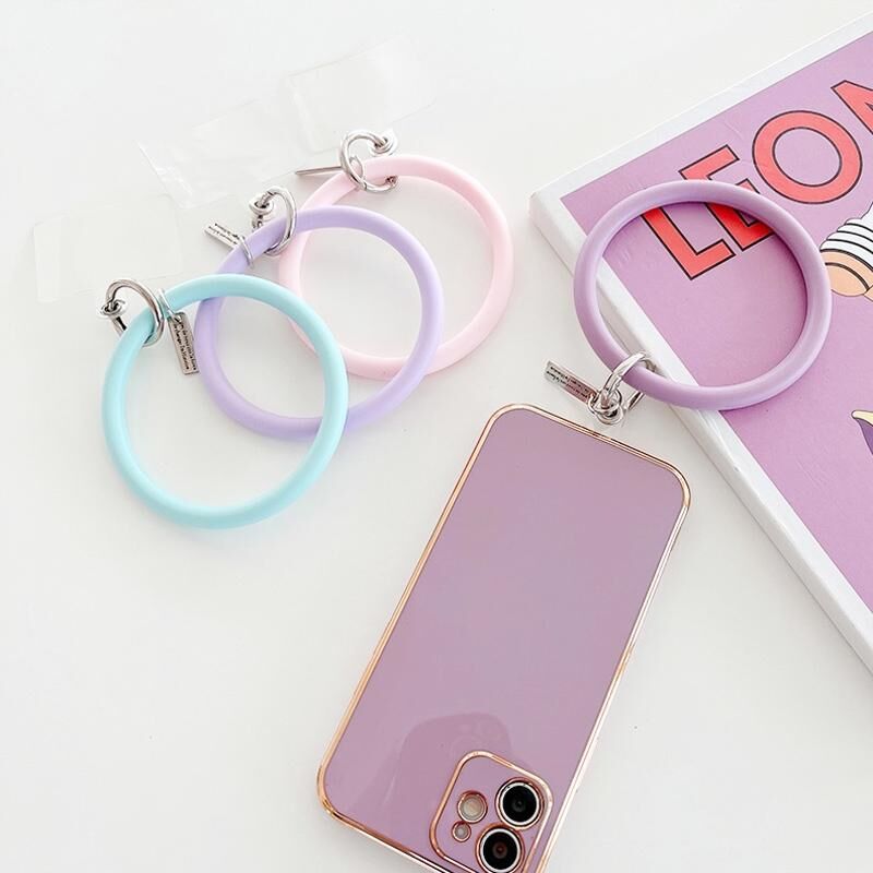 3 Τεμ. Θήκη Τηλεφώνου Βραχιόλι Σιλικόνης Μπρελόκ Αντικραδασμική Λουρί Τηλεφώνου με Αυτοκόλλητο (Ροζ)